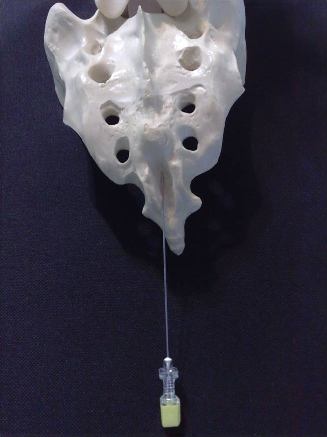 A entrada é no hiato sacral e a injeção dos medicamentos não muda em relação às outras infiltrações.